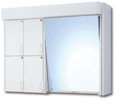 TRIMIRO Typ G, mit Kippspiegel, Seitenteil mit 4 Türen, in Kunstharz weiss |